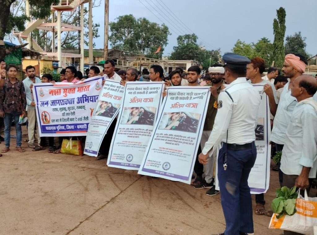 धमतरी। एसपी सूरज सिंह परिहार के निर्देश पर जिले में नशा मुक्ति और यातायात सुरक्षा को लेकर निरंतर जन-जागरूकता अभियान चलाया जा रहा है,इसी क्रम में यातायात उप निरीक्षक श्री खेमराज साहू एवं उनकी टीम द्वारा ग्राम छाती के साप्ताहिक बाजार में जन-जागरूकता कार्यक्रम का आयोजन किया गया।