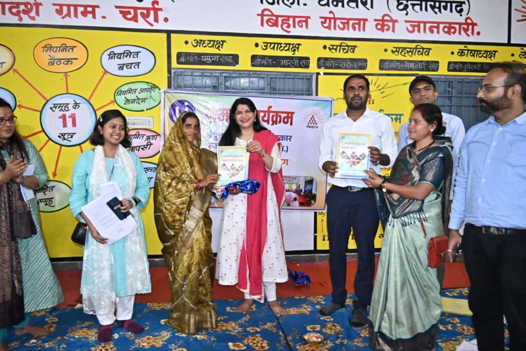 धमतरी,भारत सरकार के ग्रामीण विकास विभाग की संयुक्त सचिव स्वाति शर्मा कुरूद विकासखंड के ग्राम चर्रा पहुँचीं,राष्ट्रीय ग्रामीण आजीविका मिशन (बिहान) के अंतर्गत गठित स्व-सहायता समूहों की महिलाओं के साथ बैठक कर उनके कार्यों की जानकारी ली और प्रोत्साहित किया,ग्रामीण महिलाएं आत्मनिर्भर बनें और महिलाओं से कहा कि उनके कार्यों को और बेहतर बनाने के लिए नवाचार और तकनीकी सहायता को अपनाना होगा।