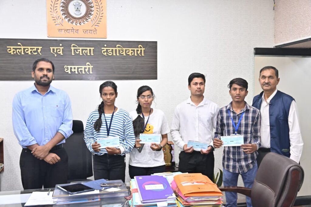 कलेक्टर ने विजेता विद्यार्थियों को पुरस्कृत राशि के चेक वितरण कर विजेताओं को बधाई दी