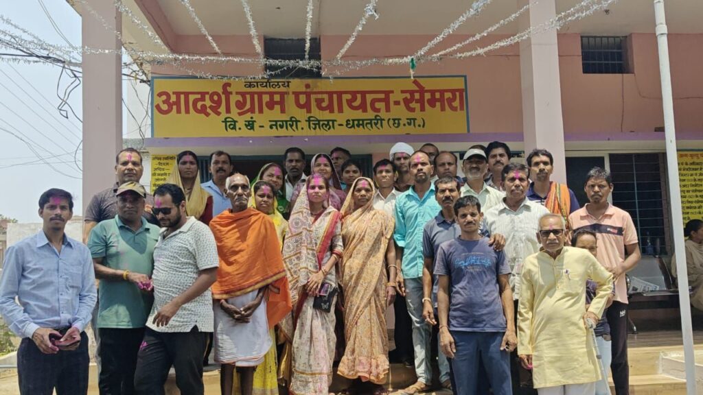 धमतरी। ग्राम पंचायत सेमरा में अविश्वास प्रस्ताव के बाद हुए पुनः चुनाव में सरपंच कविता ध्रुव सभी आरोपों को निराधार साबित करते हुए एक बार फिर अपनी कुर्सी बचा ली।बताया जा रहा है कि 20 वार्डों वाली इस पंचायत में 17 वार्ड पंचों ने एकजुट होकर सरपंच के खिलाफ एसडीएम कार्यालय में अविश्वास प्रस्ताव पेश किया था। इसके बाद प्रशासन द्वारा नियमानुसार पुनः मतदान कराने के निर्देश दिए गए।चुनाव से पहले गांव में पंचों और सरपंच के बीच समन्वय बनाने के लिए बैठक भी आयोजित की गई, लेकिन किसी तरह की सहमति नहीं बन पाई और 18 अप्रैल को विधिवत चुनाव प्रक्रिया संपन्न हुई।सभी पंचों ने अपने-अपने मत का उपयोग किया। मतदान के बाद हुए मतगणना में सरपंच के पक्ष में 6 वोट पड़े, जबकि एक मत निरस्त हो गया।पंचायत राज नियमों के अनुसार एक-तिहाई मत प्राप्त होने पर सरपंच को पद पर बने रहने का अधिकार होता है। इसी आधार पर सरपंच ने जीत दर्ज की।