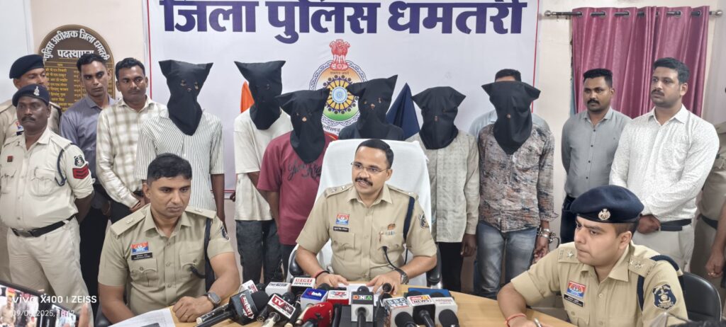 धमतरी। भानपुरी में हुए बुजुर्ग की हत्या और लूट के सनसनीखेज मामले का पुलिस ने किया खुलासा।1 सितंबर की रात ग्राम भानपुरी निवासी 65 वर्षीय कृतराम साहू अपने घर में सो रहे थे। देर रात करीब 2 बजे तीन नकाबपोश घर में घुसे। आरोपियों ने साहू दंपत्ति को बंधक बनाकर अलमारी से सोने-चांदी के जेवर, 5 हजार रुपये और मोबाइल लूट लिया। विरोध करने पर आरोपियों ने धारदार हथियार से हमला कर कृतराम की हत्या कर दी और मौके से फरार हो गए।पुलिस टीम ने मुखबिर के सूचना और तकनीकी साक्ष्यों के आधार पर त्वरित कार्रवाई करते हुए 6 आरोपियों को गिरफ्तार किया।पूछताछ में आरोपियों ने अपने जुर्म कबूल किया।पुलिस ने आरोपियों के खिलाफ बीएनएस की विभिन्न धाराओं एवं आर्म्स एक्ट के तहत मामला दर्ज कर न्यायिक रिमांड पर जेल भेज दिया है।
