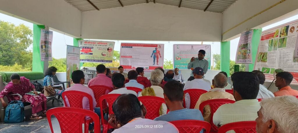 धमतरी। एकीकृत नाशीजीव प्रबंधन केंद्र, रायपुर और कृषि विभाग जिला धमतरी के सयुक्त तत्त्वधान में दो दिवसीय कार्यक्रम ग्राम पंचायत गाड़ाडीह गांव, ब्लाक कुरूद,में आयोजित किया गया।इसमें 60 प्रतिभागियों ने भाग लीया जो मुख्यत: प्रगतिशील किसान, किसान उत्पादक संगठन एवं किसान मित्र, पेस्टीसाइड डीलर, महिला किसान कृषि एवं उद्यानिकी विभाग मौजूद थे।कार्यक्रम का उद्घाटन कार्यालय प्रमुख नीरज कुमार सिंह, उप निदेशक,उप परीयोजना संचालक कृषि, सी. आर. साहू वरिष्ठ कृषि विस्तार अधिकारी कुरूद एवं रीता सिंगारे,द्वारा किया गया।डॉ रीता ने प्रशिक्षणार्थी को  आईपीएम तकनीकों से अवगत कराया और संबंधित पद्धति को अपनाने के बारे में चर्चा की तथा एन.पी.एस.एस. एप को मोबाइल में डाउनलोड कराया एंव विशेषताओ के बारे मे विस्तार पूर्वक बताया गया।उप-निदेशक ने धान में लगाने वाले कीट और रोगों के लक्षण एवं उपाय के विस्तृत जानकारी प्रदान करी।किसानों को बीजोपचार का महत्व और विभिन्न प्रकार के रोग और प्रबंधन के बारे में बताया।वैज्ञानिक सहायक ने कीटनाशकों का सुरक्षित और उचित उपयोग के बारे मे और विभिन्न प्रकार के प्रपंच जैसे की पीले एवं नीले चिपचिपा प्रपंच, प्रकाश प्रपंच फ्रूट फ्लाई प्रपंच आदि के बारे में चर्चा किया गया।किसानो को जैव नियंत्रण कारको का ट्राईकोडर्मा एसपीपी और मेटारिजियम एसपीपी का भी वितरण किया गया।