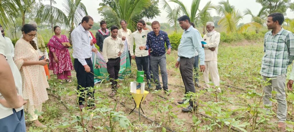 ग्राम गाड़ाडीह, विकास खंड कुरुद में केंद्रीय नाशीजीव प्रबंधन संस्थान रायपुर एवं कृषि विभाग धमतरी की संयुक्त भागीदारी ने खरीफ फसलों में रासायनिक कीटनाशको के अत्यधिक उपयोग पर गंभीर चिंता व्यक्त किया। साथ ही इसके उपयोग के जगह पर इंटेग्रेटेट पेस्ट मैनेजमेंट से फसलों की सुरक्षा पर विस्तार पूर्वक जानकारी दी। गौ आधारित प्राकृतिक खेती करने वाले कृषक रमन लाल साहू के धान की फसल में तनाछेदक, पत्ता मोड़क के बायोलॉजिकल कंट्रोल के लिए रेडूविड बग को खेत मे छोड़ा गया।इस प्रशिक्षण में कृषक, कृषि ओषधि विक्रेता, किसान संगवारी, महिला कृषक, एवम कृषक उत्पादन संगठन के प्रतिनिधि के साथ कृषि एवं उद्यानिकी विभाग उपस्थित रहे।