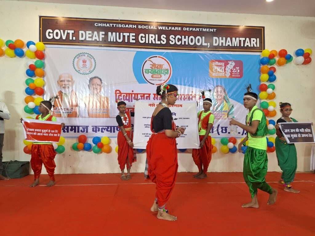 नशा मुक्ति अभियान में दिव्यांगजनों की प्रतिभा का उपयोग किया जाए ताकि समाज को सकारात्मक संदेश मिल सके। इस अवसर पर सदस्य जिला पंचायत मोनिका देवांगन, डॉ. मनीषा पाण्डेय सहित स्वैच्छिक संस्थाओं के अध्यक्ष एवं सदस्यगण उपस्थित रहे।अतिथियों द्वारा दिव्यांगजन सम्मान पुरस्कार से सम्मानित किया गया।छात्र-छात्राओं को पुरस्कार वितरित कर उत्साहवर्धन किया।जिले के शासकीय एवं स्वैच्छिक संस्थाओं से जुड़े 350 दिव्यांग छात्र-छात्राएँ शामिल हुए,बच्चों ने नृत्य, गायन और नाटक की प्रस्तुतियां दीं।साथ ही नशामुक्ति पर आधारित पेंटिंग प्रदर्शनी भी लगाई गई।