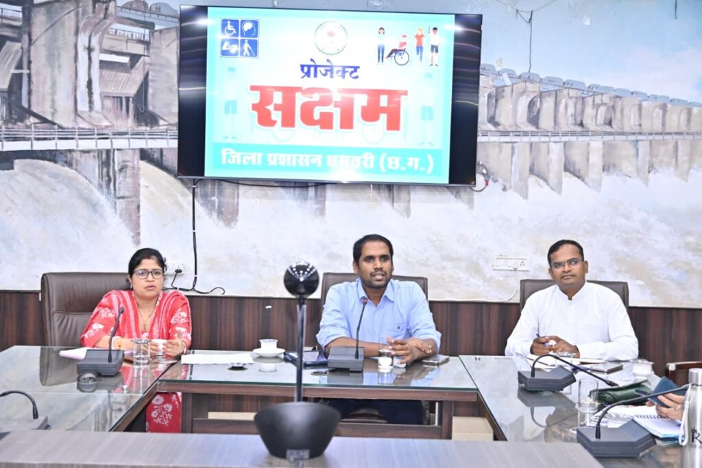 धमतरी। कलेक्टर की अध्यक्षता में “प्रोजेक्ट सक्षम” के तहत दिव्यांगजनों के सशक्तिकरण हेतु बैठक संपन्न हुई। प्रोजेक्ट का उद्देश्य दिव्यांगजनों को स्वावलंबी, आत्मनिर्भर एवं सम्मानजनक जीवन प्रदान करना है।इसके तहत शिक्षा, स्वास्थ्य, कौशल विकास, रोजगार, आर्थिक सहायता और सामाजिक सुरक्षा से जुड़ी योजनाओं को एकीकृत रूप से लागू किया जा रहा है।यह दिव्यांगजनों के जीवन में सकारात्मक परिवर्तन लाने का एक व्यापक अभियान है।