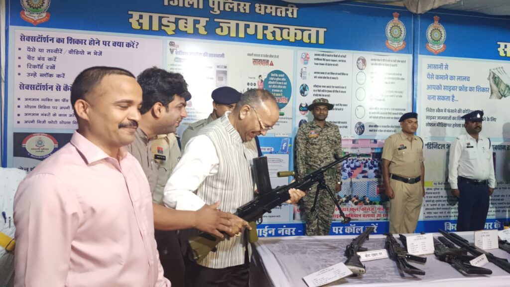 धमतरी। जिला स्तरीय राज्योत्सव कार्यक्रम के मुख्य अतिथि अजय चंद्राकर ने कि स्टॉल निरीक्षण।राज्योत्सव में पंचायत एवं ग्रामीण विकास, आदिवासी विकास, जल संसाधन , लोक स्वास्थ्य यांत्रिकी, छत्तीसगढ़ ग्रामीण बैंक, वाणिज्य एवं उद्योग, राजस्व, क्रेडा ,छत्तीसगढ़ विद्युत मंडल, पुलिस, परिवहन, जनसंपर्क, विधिक सेवा, खाद्य ,कृषि, मछलीपालन,पशुधन विकास, उद्यान, छत्तीसगढ़ गृह निर्माण मंडल, समाज कल्याण, श्रम, स्कूल शिक्षा, नगरीय प्रशासन, महिला एवं बाल विकास और वन विभाग द्वारा विकास गतिविधियों पर आधारित प्रदर्शनी लगाई गई है।