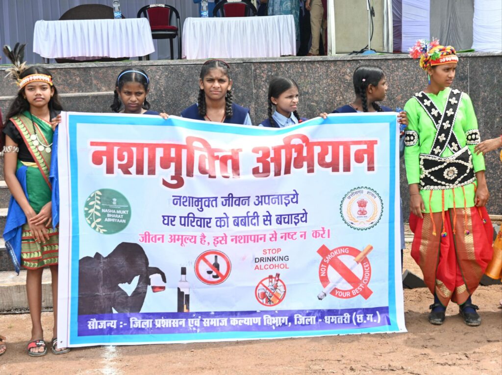 धमतरी, जिले में नशामुक्त भारत अभियान की 5 वीं वर्षगांठ के अवसर पर जन-जागरूकता कार्यक्रमों का आयोजन किया गया, विभिन्न स्थानों पर नशा मुक्ति हेतु शपथ दिलाई गई,शोभाराम देवांगन खेल मैदान में स्वतंत्रता दिवस की पूर्व आयोजित फुल ड्रेस रिहर्सल कार्यक्रम में स्कूली बच्चों, जिला ग्रंथालय और सार्थक स्कूल के विद्यार्थियों को नशे से दूर रहने तथा अन्य लोगों को भी जागरूक करने की शपथ दिलाई गई।