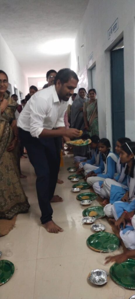 धमतरी,जिले के शासकीय उच्चतर माध्यमिक विद्यालय रुद्री में आयोजित न्योता भोज में मानवीय और प्रेरक दृश्य देखने को मिले,कलेक्टर अबिनाश मिश्रा और अध्यक्ष जिला पंचायत अरुण सर्वा ने स्वयं स्कूली बच्चों को भोजन परोसा और साथ में जमीन पर बैठकर भोजन ग्रहण किया,एवं बच्चों से आत्मीय बातचीत की, बच्चों ने भी कलेक्टर को अपने बीच पाकर परिवार के मुखिया की तरह महसूस किया,विद्यार्थियों से कहा कि “आप सभी को खूब मन लगाकर पढ़ना है और ऊँचे मुकाम पर पहुँचना है।
