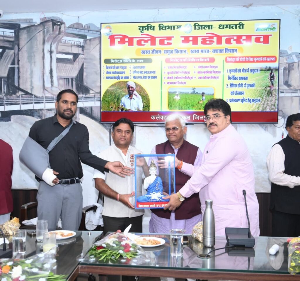धमतरी। जिले में मिलेट्स (श्रीअन्न) की खेती को जन-आंदोलन का स्वरूप देने, किसानों की आय बढ़ाने तथा आमजन को पोषणयुक्त आहार की ओर प्रेरित करने के उद्देश्य “मिलेट्स महोत्सव” का आयोजन प्रात: 11 बजे किया गया।कार्यक्रम के मुख्य वक्ता में “मिलेट्स मैन” के नाम से विख्यात डॉ. खादर वल्ली रहे।उन्होंने किसानों, जनप्रतिनिधियों एवं आमजन से कहा कि मिलेट्स केवल भोजन नहीं, बल्कि स्वस्थ जीवन और आत्मनिर्भर खेती का आधार हैं।वल्ली ने किसानों से कहा कि मिलेट्स की फसल कम पानी, कम लागत और कम रासायनिक खाद में तैयार होती है,सूखा, बाढ़ और जलवायु परिवर्तन जैसी परिस्थितियों में भी बेहतर उत्पादन देती है,पारंपरिक धान की तुलना में जोखिम कम और मुनाफा अधिक देती है।वल्ली ने किसानों से आह्वान किया कि वे रासायनिक खेती से हटकर प्राकृतिक एवं जैविक तरीके से मिलेट्स उत्पादन अपनाएं, जिससे स्वास्थ्य के साथ-साथ बाजार में बेहतर मूल्य प्राप्त हो सके।इस अवसर पर महापौर ने कहा कि “मिलेट्स आज केवल स्वास्थ्य का विषय नहीं, बल्कि रोजगार, स्टार्टअप और महिला स्व-सहायता समूहों से जुड़कर आर्थिक सशक्तिकरण का मजबूत माध्यम बन चुका है। ऐसे आयोजनों से जिले में नई कृषि संस्कृति विकसित होगी।