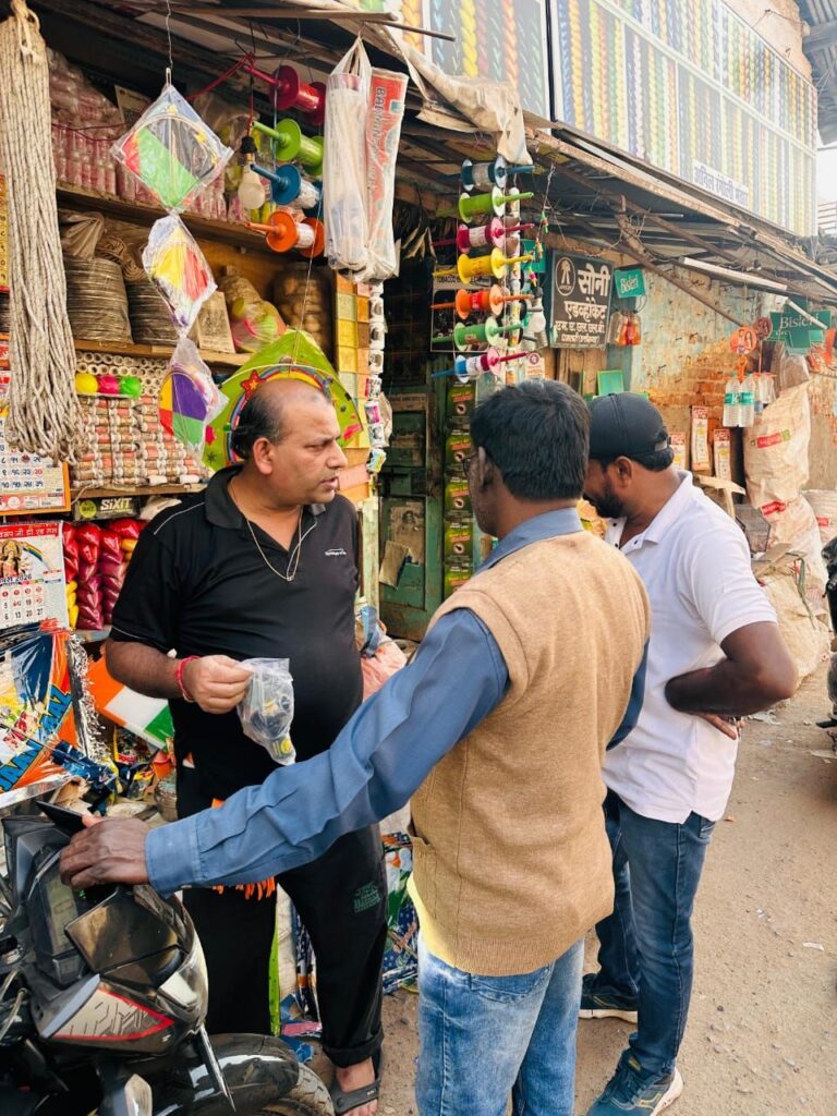 तथा बताया कि चाइनीज मांझा मानव जीवन, पक्षियों और पर्यावरण के लिए अत्यंत खतरनाक है।इसके विक्रय पर पूर्ण प्रतिबंध है, उल्लंघन पाए जाने पर जुर्माना व कानूनी कार्रवाई की जाएगी।एवं शहरवासियों से अपील की है कि वे सुरक्षित और स्वदेशी मांझे का ही उपयोग करें।
