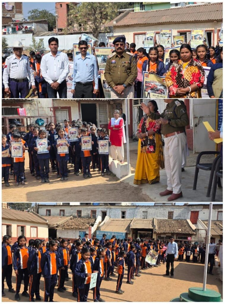 धमतरी। राष्ट्रीय सड़क सुरक्षा माह के अंतर्गत जिलेभर में प्रतिदिन यातायात जागरूकता के विविध कार्यक्रम आयोजित किए जा रहे हैं।इसका उद्देश्य है आम नागरिकों के साथ-साथ स्कूली छात्र-छात्राओं में भी सड़क सुरक्षा के प्रति जागरूकता विकसित करना।इसी क्रम में पुलिस यातायात द्वारा वंदे मातरम इंग्लिश मीडियम स्कूल,एवं बनरौद हाई स्कूल में जागरूकता कार्यक्रम आयोजित किया गया, जिसमें बड़ी संख्या में छात्र- छात्राओं ने सहभागिता की।इस दौरान विद्यार्थियों को यातायात नियमों से संबंधित जानकारी देते हुए पंपलेट वितरित किए गए।तथा हेलमेट पहनने,सीट बेल्ट का अनिवार्य उपयोग करने, सड़क पार करते समय सतर्कता बरतने, यातायात संकेतों व नियमों का पालन करने तथा सुरक्षित सड़क व्यवहार अपनाने के बारे में विस्तारपूर्वक समझाया गया।साथ ही विद्यार्थियों को नशे के दुष्प्रभावों से अवगत कराते हुए नशामुक्त जीवन अपनाने, स्वयं को सुरक्षित रखने एवं समाज को सकारात्मक दिशा देने का संदेश दिया गया।अधिकारियों ने कहा कि नशा न केवल व्यक्ति के स्वास्थ्य को नुकसान पहुँचाता है, बल्कि सड़क दुर्घटनाओं का एक प्रमुख कारण भी है।पुलिस यातायात द्वारा प्रमुख मार्गों पर आम नागरिकों को नियमों के प्रति जागरूक करने हेतु जागरूकता फ्लेक्स बैनर लगाए जा रहे हैं।