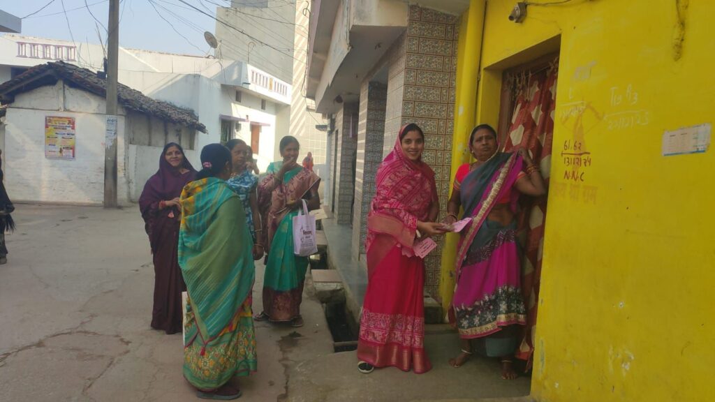 धमतरी। मकर संक्रांति पर्व पर सुभाष नगर की पार्षद पूर्णिमा देवांगन अपनी सहेली एवं रिश्तेदारों के साथ वार्ड में घर घर जाकर लड्डू बाटी।