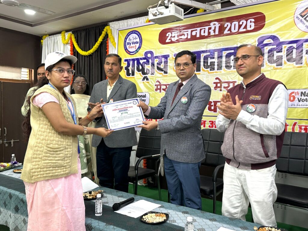 धमतरी। बाबू छोटेलाल श्रीवास्तव स्नातकोत्तर महाविद्यालय में 16वें राष्ट्रीय मतदाता दिवस का आयोजन किया गया।कार्यक्रम के मुख्य अतिथि जिला एवं सत्र न्यायाधीश मोहनसिंह कोर्राम रहे।कोर्राम ने लोकतांत्रिक व्यवस्था में मताधिकार के महत्व पर विस्तार से चर्चा करते हुए,कहा कि देश के प्रत्येक नागरिक को शासन व्यवस्था में भागीदारी सुनिश्चित करने हेतु मताधिकार एक सशक्त अस्त्र के रूप में प्रदान किया गया है।अतः सभी मतदाताओं से अपील की कि वे प्रत्येक निर्वाचन में अनिवार्य रूप से मताधिकार का प्रयोग कर लोकतंत्र को सुदृढ़ बनाएं।साथ ही नए मतदाताओं को बधाई एवं शुभकामनाएं भी दीं।वहीं जिला निर्वाचन अधिकारी पवन प्रेमी ने कहा कि मतदान का अधिकार मिलने के साथ-साथ यह प्रत्येक नागरिक का कर्तव्य भी है। सभी चुनावों में सक्रिय सहभागिता निभाने तथा निर्वाचन प्रकिया संबंधी जानकारी भी दी।इस अवसर पर कोर्राम ने उपस्थित नागरिकों एवं विद्यार्थियों को लोकतंत्र में पूर्ण आस्था रखते हुए देश की लोकतांत्रिक परंपराओं की मर्यादा बनाए रखने तथा सभी निर्वाचन में मताधिकार का प्रयोग करने की शपथ दिलाई।