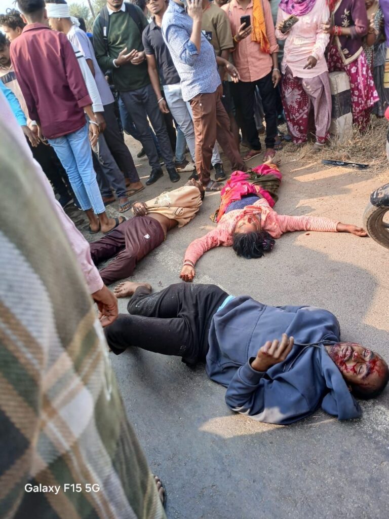 धमतरी। भखारा रोड में हादसों का सिलसिला थमने का नाम ही नहीं ले रहा है।एक तरफ पुलिस प्रशासन द्वारा सड़क सुरक्षा माह मनाया जा रहा है दूसरी तरफ लगातार हादसे हो रहे हैं, 2 दिन पहले ही देमार में गुजरा के एक बुजुर्ग की मौत हुई थी। फिर से सुबह लगभग 9:30 बजे भयानक हादसा हुआ है।बताया जा रहा है कि पखांजुर के लोग रायपुर की तरफ से धमतरी की ओर आ रहे थे और ट्रक धमतरी बसे रायपुर की ओर जा रही थी। तभी देमार के पास आमने-सामने भिड़ंत हो गई। जिसमें मौके पर ही एक बुजुर्ग की मौत हो गई चार गंभीर रूप से घायल हो गए ,जिन्हें वरदान एंबुलेंस से शिवा प्रधान ने जिला अस्पताल पहुंचाया। यहां पर तत्काल उपचार शुरू कर दिया गया। सूचना मिलने है ग्रामीण बड़ी संख्या में घटना स्थल पहुंचे और चक्का जाम कर एक ही मांग कि यहां पर ब्रेकर बनाया जाए।टोल बचाने के लिए बड़ी ट्रक इधर से तेज रफ्तार से गुजरती है।पीडब्ल्यूडी अधिकारी के पहुंचने के बाद आश्वासन दिया गया।तब लोगों ने चक्का जाम हटाया और पुलिस ने रोड क्लियर करवाया।