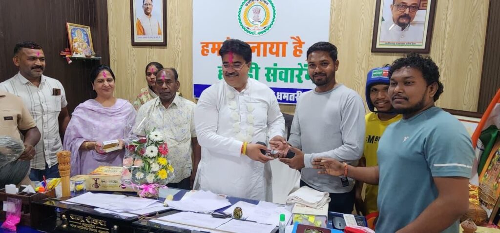 धमतरी। शासन की क्रीड़ा प्रोत्साहन योजना के अंतर्गत नगर निगम को विभिन्न खेल सामग्रियों की सौगात प्राप्त हुई है,महापौर ने शहर के विभिन्न खेल संघों एवं क्लबों को में सामग्रियों का वितरण कर कहा कि खिलाड़ियों को उत्कृष्ट सुविधाएं उपलब्ध कराना नगर निगम की सर्वोच्च प्राथमिकता है।कहा कि “सशक्त खिलाड़ी ही सशक्त समाज की पहचान हैं।यदि हमारे युवा खेल के क्षेत्र में आगे बढ़ेंगे तो धमतरी का नाम राज्य और राष्ट्रीय स्तर पर स्वर्ण अक्षरों में दर्ज होगा।खेल सामग्री मिलने से खिलाड़ियों को नियमित और बेहतर अभ्यास का अवसर मिलेगा, जिससे उनकी प्रतिभा और निखरेगी।वहीं खेल संघों के प्रशिक्षकों एवं खिलाड़ियों ने खेल सामग्री प्राप्त होने पर हर्ष व्यक्त करते हुए कहा कि लंबे समय से आधुनिक संसाधनों की आवश्यकता महसूस की जा रही थी।अब इन सुविधाओं से खिलाड़ियों का मनोबल बढ़ेगा और वे नई ऊर्जा एवं उत्साह के साथ अभ्यास कर बेहतर प्रदर्शन करेंगे।