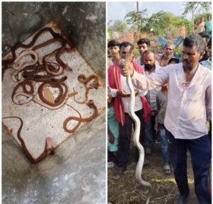 रायपुर । जिले के आरंग विकासखंड के ग्राम देवरी में एक किसान परिवार के घर से नाग-नागिन और उनके करीब 35 छोटे सांप निकलने से गांव में सनसनी फैल गई। इंद्रकुमार साहू के घर में पिछले कुछ दिनों से छोटे सांप दिखाई दे रहे थे। पहले तो परिवार ने खुद उन्हें बाहर निकाल दिया, लेकिन जब सांपों की संख्या बढ़ती गई तो गांव वालों को सूचना दी गई।